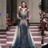 The transparency of tulle and organza finds a counterpoint in chiselled peplums and flowing capes or liquid satin; organdy petals are pleated like origami while traditional laces such as guipure or Chantilly are modernized with lacquer finishes, articulations, and embroidery in relief. Judiciously placed tube beading, paillettes, trompe l’œil, tremblants, feathers, fringe and crystal embroideries illuminate silhouettes, while jewelled parures and precious bows are both striking and functional.