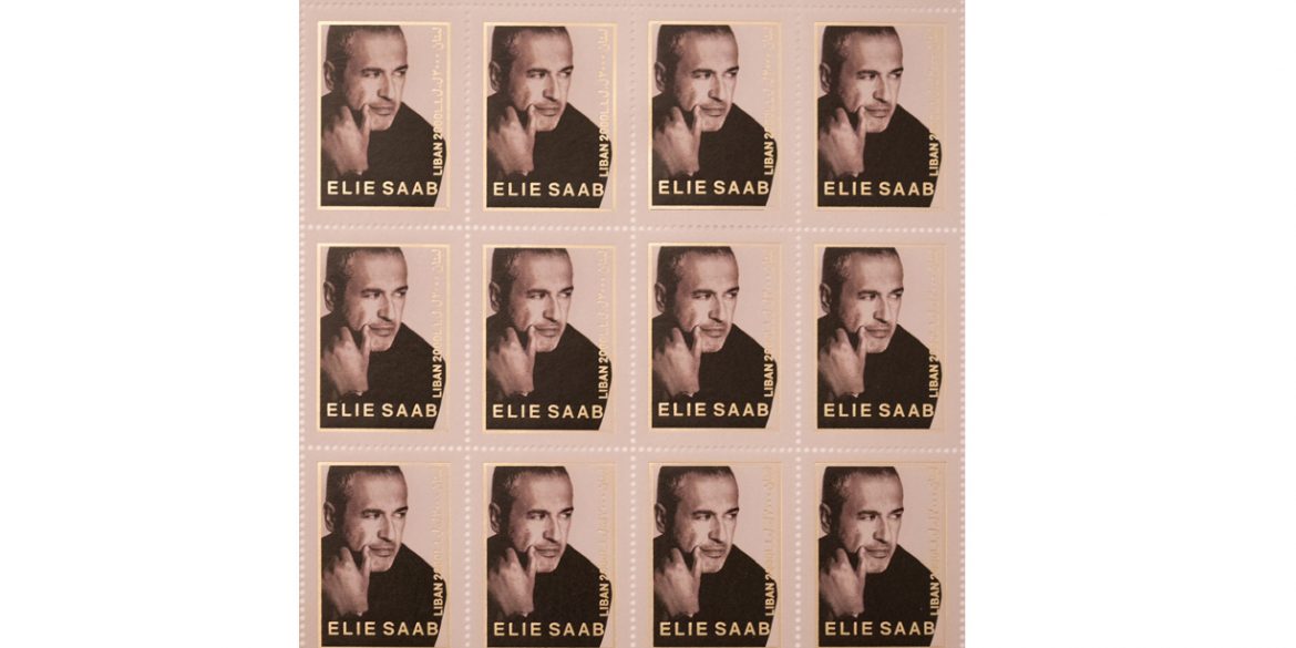 A national Lebanese postage stamp honoring Mr. Elie Saab was unveiled, featuring his portrait, and is intended to pay tribute to his international accomplishments