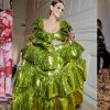 Cette collection est constituée d’une superposition d’images : la peau tatouée de la femme, qui rappelle le cirque victorien et ses phénomènes de foire, devient une combinaison aux motifs merveilleux qui façonnent le corps et racontent une histoire à porter sous les robes. Les couleurs poudrées qui se déclinent et se mêlent en une palette infinie – tout comme celles du rideau peint par Pablo Picasso pour le ballet Parade – symbolisent aussi cette usure, cette fine poussière qui revêt les habits de scène. Les jupes brodées ou incrustées de paillettes opaques sont raccourcies, jusqu’à devenir des tutus qui évoquent encore les codes du cirque peuplé d’acrobates, de dompteurs et d’écuyères.