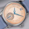 La montre se décline en dix modèles différents, assortis d’un boîtier et d’un bracelet qui présentent, au choix, une finition mate microbillée, satinée ou polie à la main. Le cadran affiche également huit dispositions, dans un choix de neuf couleurs. Il est possible de combiner ces différentes propositions. Avec ses dimensions de 38 mm x 37,3 mm, le boîtier en trois parties de la montre Le Paon n’est ni tout à fait rond, ni tout à fait ovale : il adopte une forme intermédiaire. Le boîtier en acier inoxydable est parfaitement intégré au superbe bracelet, composé de 55 maillons taillés et assemblés individuellement.