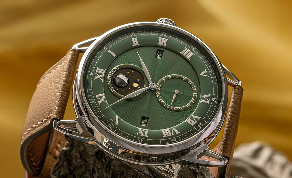 Alliant la finesse horlogère à la mécanique pointue de la Manufacture, De Bethune a présenté, à l’occasion de la cinquième édition de Dubai Watch Week, la toute dernière DB25QP dotée d’un cadran vert et d'un nouveau boîtier en titane.