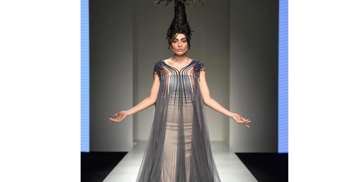 Le coiffeur libanais Fadi Nasr a ouvert la semaine de la Mode arabe à l'hôtel Meydan à Dubai, en présentant «The tree of life» le premier jour des parades. L'arbre de vie est le premier arbre fait de cheveux naturels